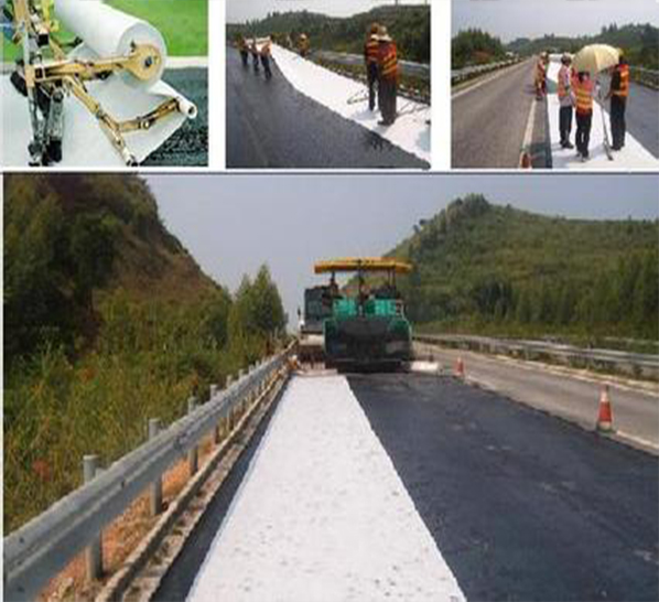 在熱拌瀝青混合料路面下安裝防水層,是保護和延長道路壽命的很好方法之一。一般材料的防裂布在高溫時會變形、損壞,聚酯玻纖布是由非織造玻纖/聚酯制造??梢越?jīng)受改性瀝青混凝土的高溫施工。聚酯玻纖布的這種高溫穩(wěn)定性將給路面提供一個連續(xù)、不變形的防水層,有效地防止水分滲透,避免因水分滲透而導(dǎo)致的路面層與基層的損壞。