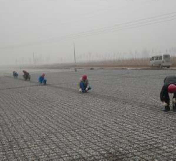 7、橋臺地基一般很容易向下沉陷,出現(xiàn)跳車現(xiàn)象,在橋臺地基下鋪設土工格柵,可提高承載力,穩(wěn)固橋臺。