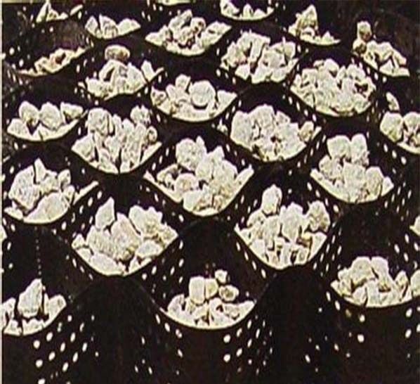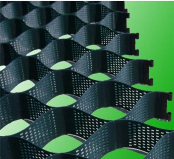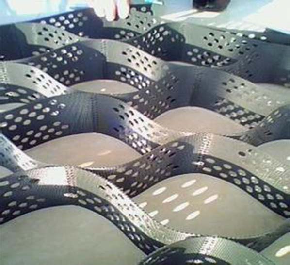 土工格室是由高強(qiáng)度的HDPE或PP共聚料寬帶,經(jīng)過強(qiáng)力焊接或鉚接而形成的一片網(wǎng)狀格室結(jié)構(gòu)。它伸縮自如,運(yùn)輸時可縮疊起來,使用時張開并又充填土石或混凝土料,構(gòu)成具有強(qiáng)大側(cè)向限制和大剛度的結(jié)構(gòu)體。它可用來做為墊層,處理軟弱地基增大地基的承載能力,也可鋪設(shè)在坡面上構(gòu)成坡面防護(hù)結(jié)構(gòu),還可以用來建造支擋結(jié)構(gòu)等。