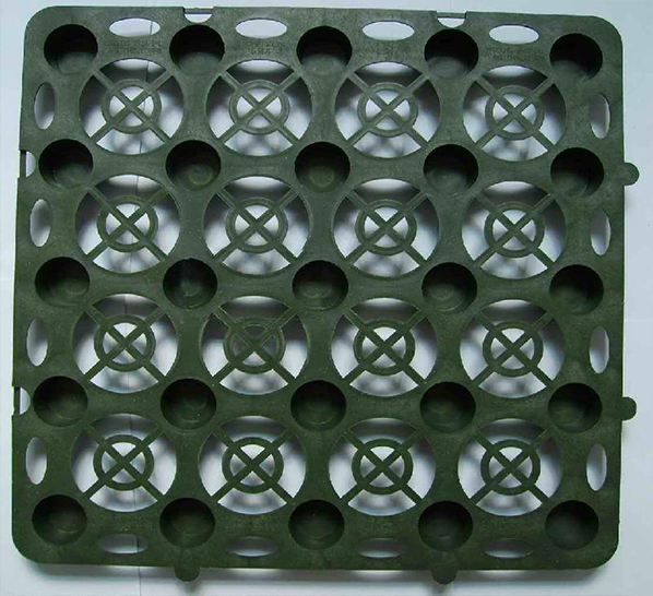 該種板材自身就具有蓄水、排水兩種綜合功能,板材具有空間剛度極高的特點(diǎn),抗壓性明顯優(yōu)于同類產(chǎn)品(可以通過(guò)現(xiàn)場(chǎng)試驗(yàn)檢驗(yàn)),能夠承受400Kpa以上的高抗壓負(fù)荷,同時(shí)可以承受在種植頂板回填土過(guò)程中機(jī)械碾壓的極端負(fù)荷情況。