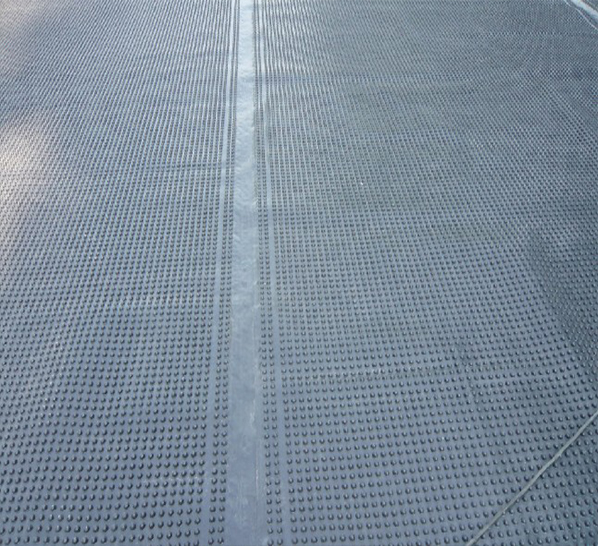 6. 當(dāng)排水板鋪設(shè)時盡可能做好保護措施,層面或室外車庫鋪設(shè)排水板應(yīng)及時盡快做好回填土工作,防止大風(fēng)吹亂排水板影響鋪設(shè)質(zhì)量。地下室和內(nèi)墻防水要盡快做好保護層,預(yù)防排水板被人或物破壞。